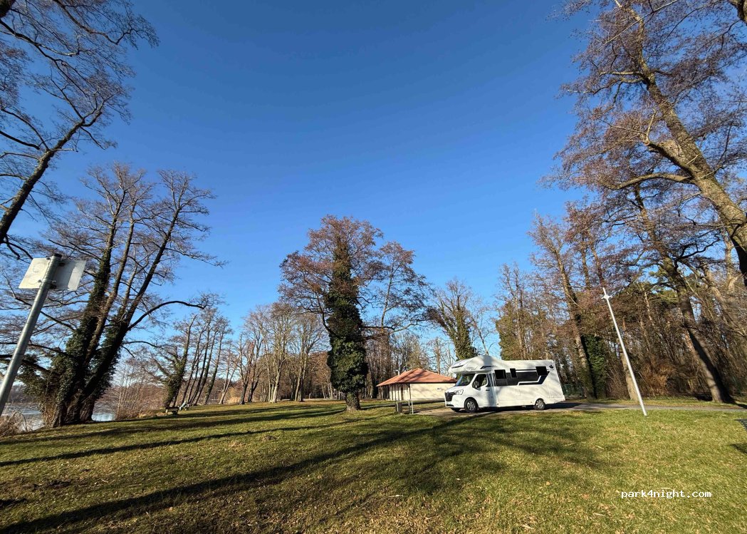 Toller Platz direkt am See und Nachts sehr ruhig. Vorläufig noch kostenlos. Später 15 Euro. Perfekte Entsorgung, Frischwasser 1 Euro. An schönen Tagen mit Picknickwagen. Einfach nur schön.