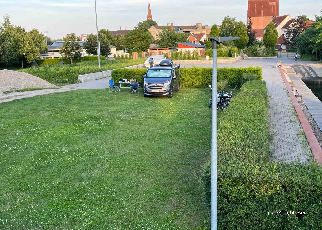 An der Peene Marina in Demmin gibt es einige Stellplätze für WoMo und Caravan sowie eine Zeltwiese. Ich habe letztes Jahr schon mit dem Hausboot angelegt. Jedes Mal wurde man sehr nett empfangen, auch wenn man keine Reservierung hat. Es findet sich auch in der Hochsaison ein Plätzchen. Ich habe mir einen Platz mit Blick auf die Marina an der Peene sowie Richtung Stadt (Kirchturm und Speicher am Hafen) ausgesucht. Das Sanitärgebäude ist neu und sehr sauber. Ein Supermarkt und eine Bäckerei sind ca. 300 Meter entfernt. Sehr zu empfehlen.