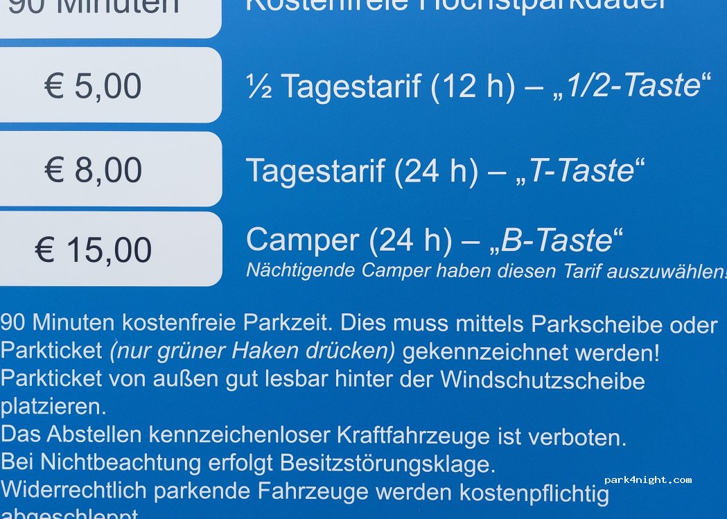 Ich kann bestätigen, dass man 24h stehen darf (Schild). Der Platz ist nicht eben aber ansonsten sehr gut. Zwei Restaurants in wenigen Minuten zu Fuß zu erreichen- wir waren Mittwochs hier und haben sehr lecker in der Bauernstube vom Grill gegessen.