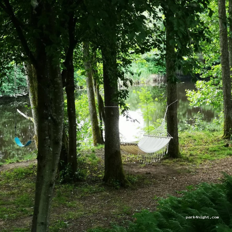 mooie plek aan de rivier. hangmatten, picknicktafels, kampvuurplaats, schommels en een steigertje met bootjes. 13 euro.