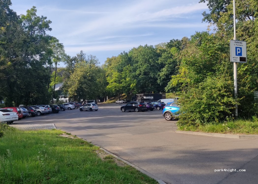 In der Nähe des Stadtzentrums am Amphitheater. Parkplatz für einen großen schönen Park. Das Parken über Nacht ist nicht ausgeschildert. 2 Zufahrtsstraßen, davon eine für Lkw gesperrt. Tagsüber stark frequentierter Platz, da einer der Hotspots von Koszalin.