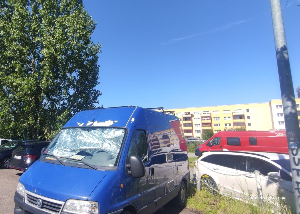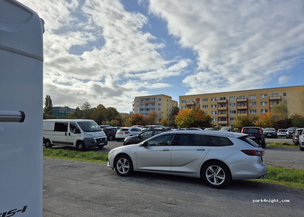 einfacher Parkplatz Auch mit großem van befahrbar Für eine Nacht und einen Besuch in Rostock ganz gut