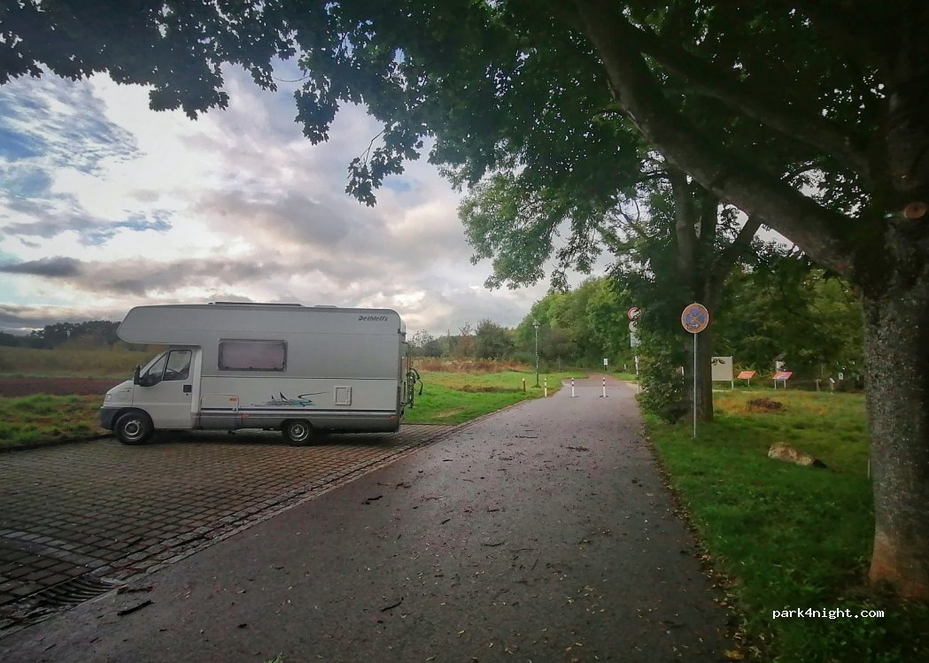 Perfekter Platz für die Durchreise und eine Nacht. Stehe rückwärts eingeparkt mit meinem 7,2m WoMo auf einer der ersten Plätze und kann so das Heck über den Parkplatz hinaus auf die Grünfläche schieben ohne hängen zu bleiben.