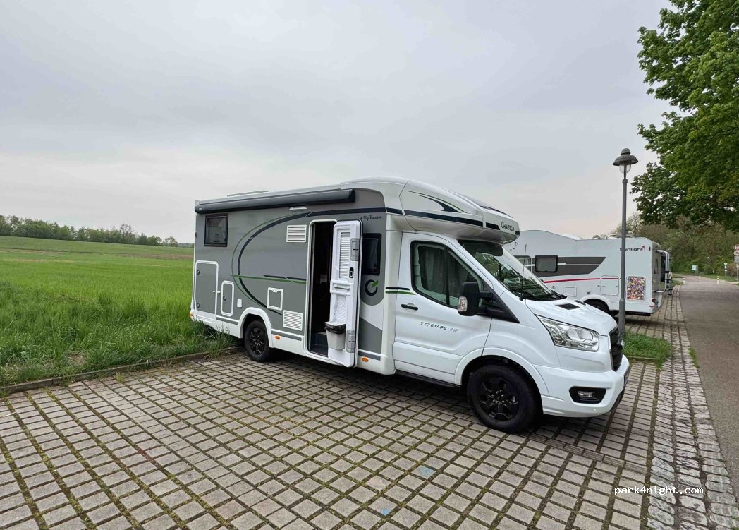 Perfekter Platz, kostenlos! Für eine Nacht, auf dem Weg nach Süden, sehr nah an der A9 gelegen. Für Fahrzeuge bis maximal 7 m. 7,50 m wären vielleicht auch möglich, wenn man rückwärts in die Parkhäfen einfährt.