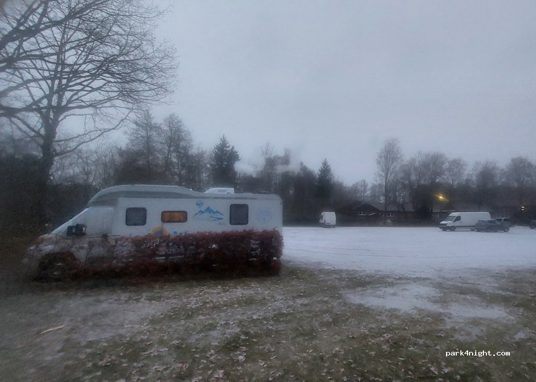 Ruime parkeerplaats op vlak verhard terrein. Vlakbij heel mooi park. In het park is ook een net openbaar toiletgebouw. Glasbakken op het parkeerterrein. Absoluut geen hinder van bromgeluid. Als je heel goed gehoor hebt zou je iets kunnen horen. Prima voor een nacht en het bezoek aan het park.