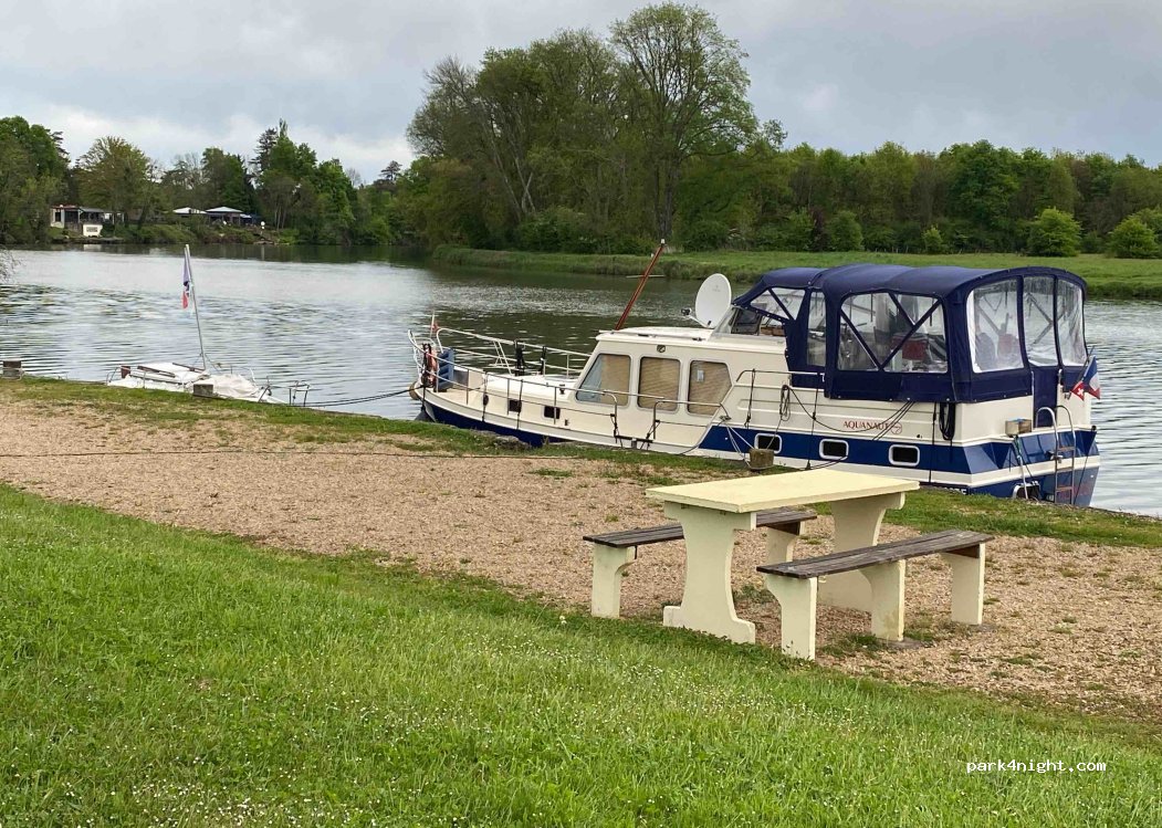 Superbe aire. Très bucolique et calme autant le jour que la nuit. Nous y sommes restés 2 nuits. Boulangerie et boucherie accessible à pied. Un grand merci à la commune pour cet emplacement partagé avec les bateaux.