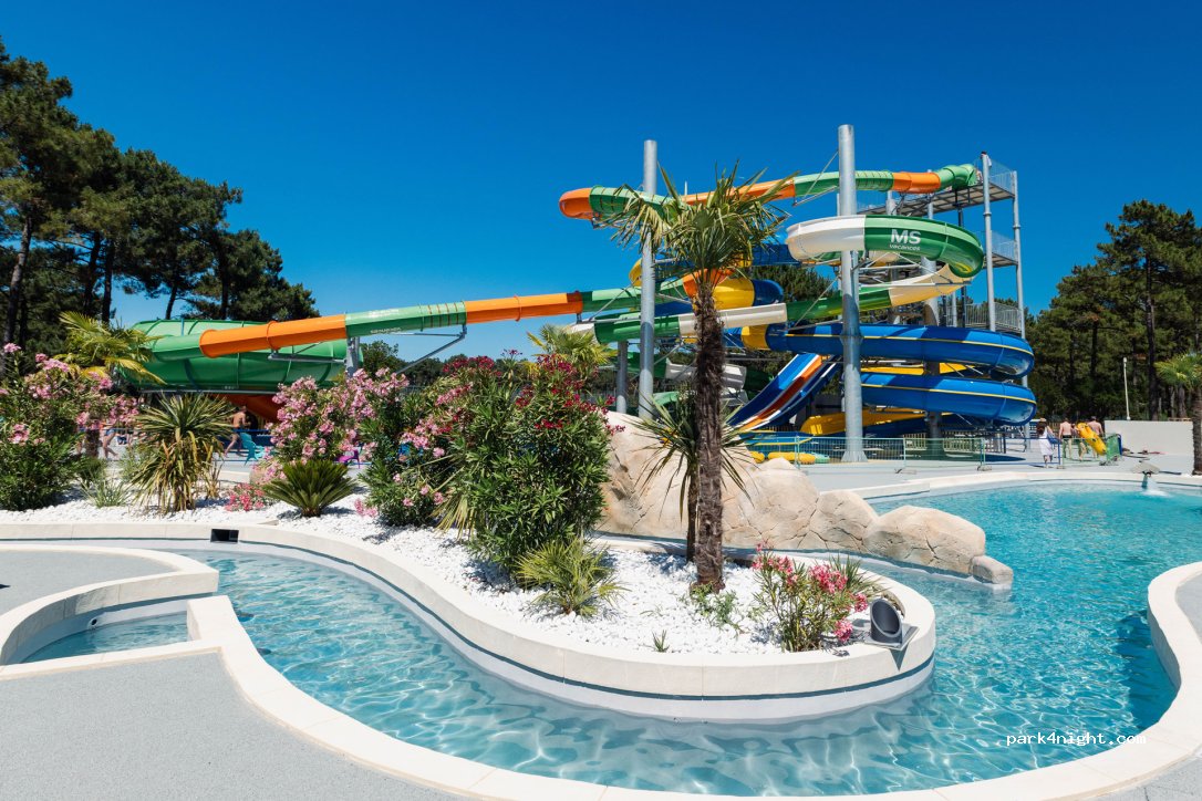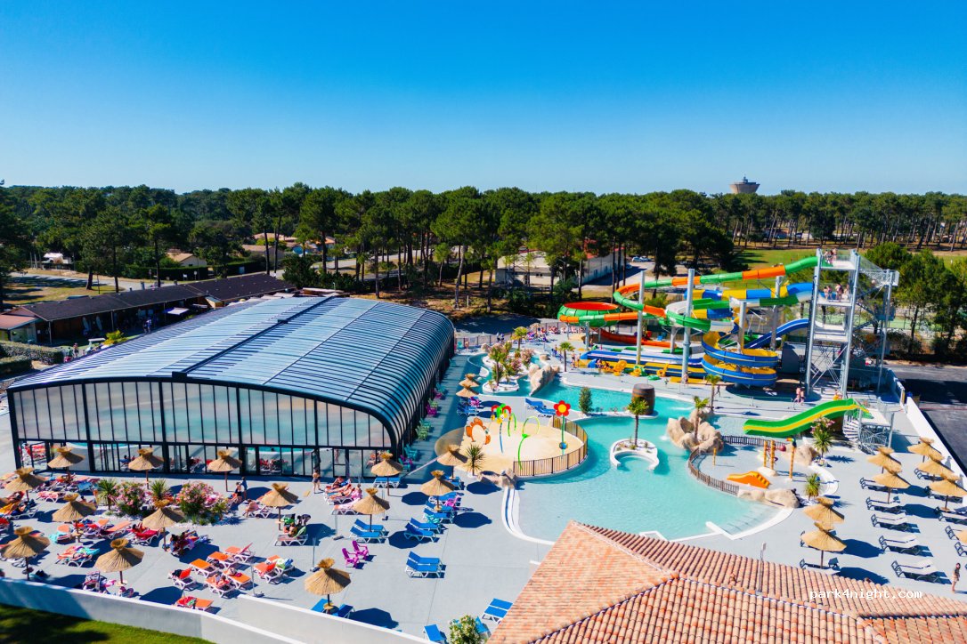 Camping 4 étoiles au Top. Restaurant et snack copieux, très bon, et tarifs plus qu'honnête, le personnel est agréable. Il y 4 styles de toboggans pour varier les plaisirs, tout neuf de cette année avec grande piscine couverte mais aussi piscine extérieure. Tarif fin août Camping-car 2 adultes 1 enfant de 11 ans 41€/ jour. Aldi juste à la sortie du camping et océan 5mn en vélo. Nous sommes conquis