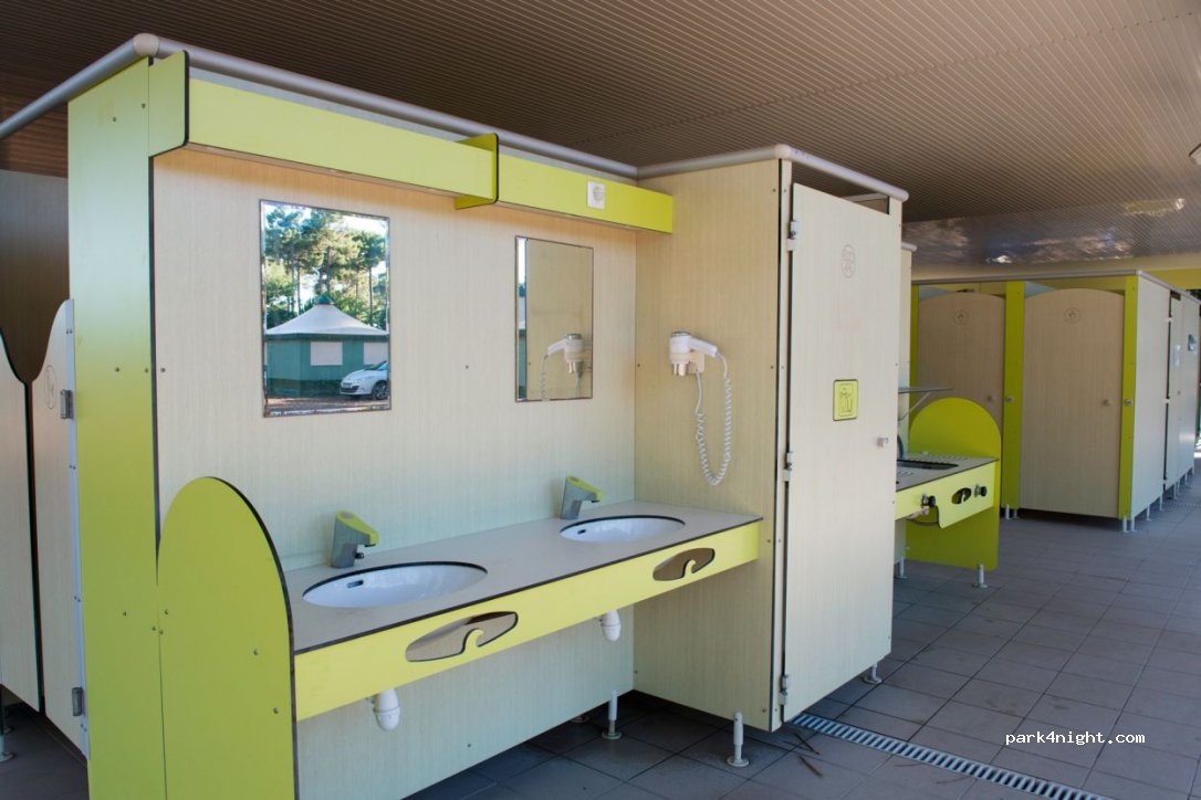 Le camping dispose de sanitaires modernes, d’une station de vidange pour camping-cars, et de nombreux services : restaurant, snack, bar, parcs aquatique avec toboggans, clubs enfants et ados, terrains de sport, salle de fitness, street workout, animations toute la saison et location de vélos.
