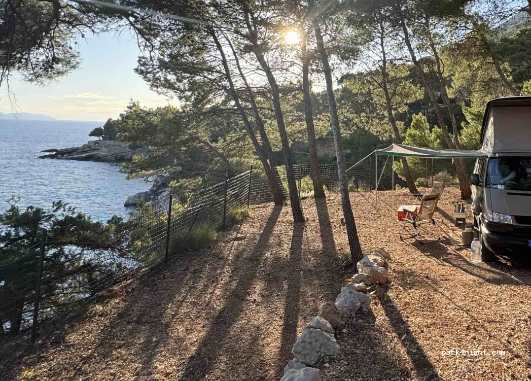 Very nice camping site. The owners where very thoughtfull people. the little beach is amazing. toilettes and showers were new. we payed 84.20 Euros for two night (taxe include) for two people and a VW Caddy Maxi. (38 Euro per night plus 2.30 taxe per night for two)