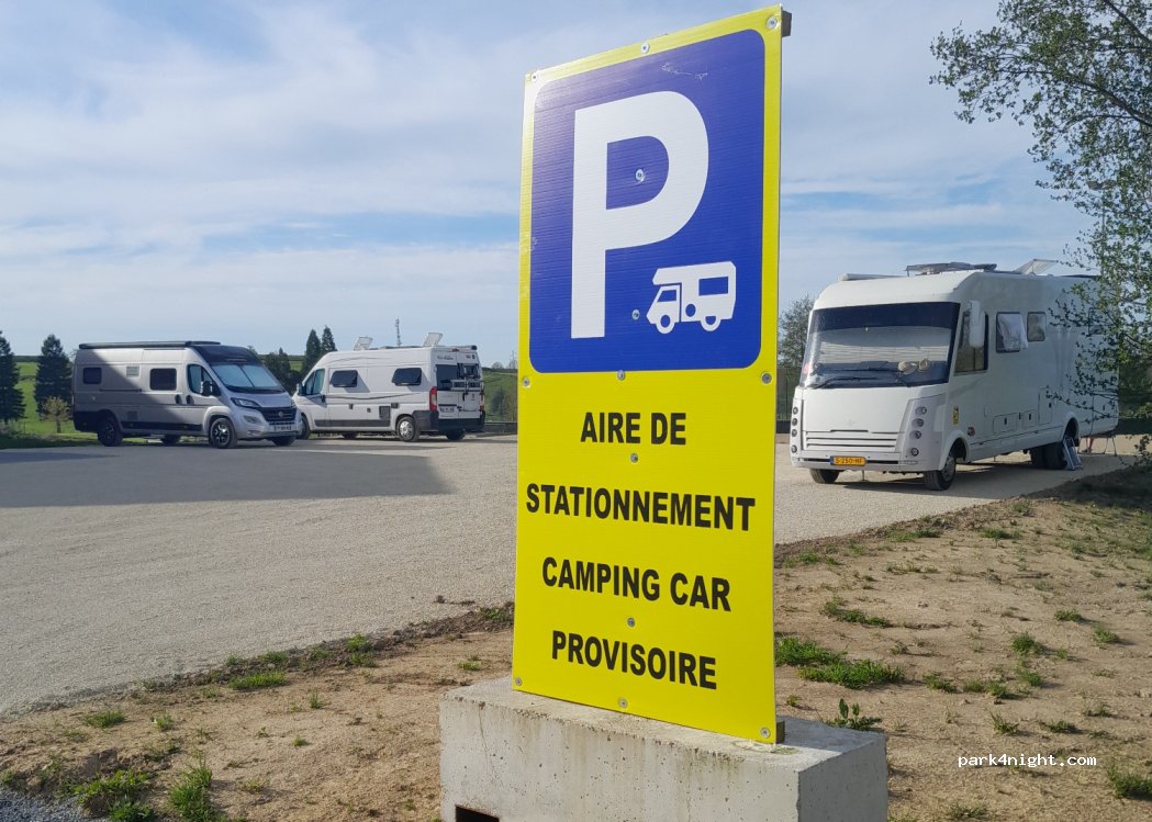 Aire calme, retirée de la route principale, accès facile et commerces à pied. Merci à la commune. Privilégiez vos achats chez les commerçants de ce village.