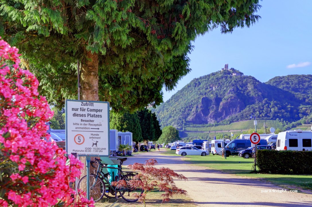Sehr freundliche Betreiber. Der Platz hat eine tolle Lage, am Rhein mit Blick auf die Burgen. Gepflegter Rasen, wenig Bäume. Sanitäranlagen und Rezeption sind in mobilen Anhängern, wahrscheinlich wegen Flutgefahr. Sehr einfach, aber sauber. Wer auf gemütliche Sanitäranlagen steht, ist hier fehl am Platz. Auch die Stromversorgung macht einen improvisierten Eindruck.