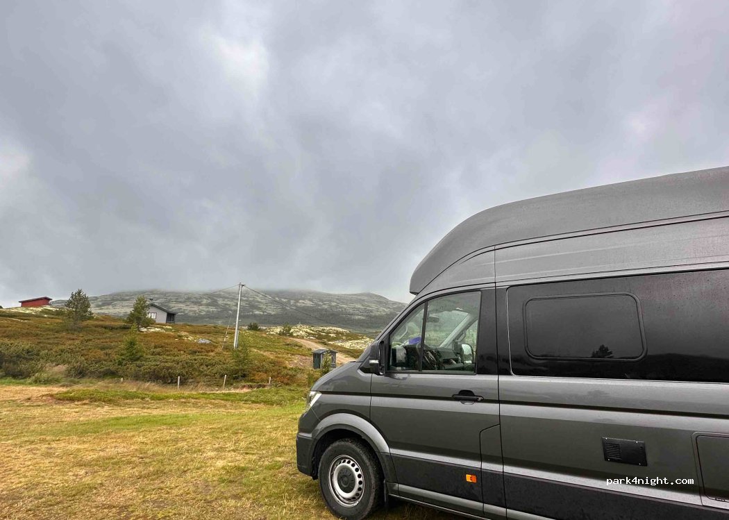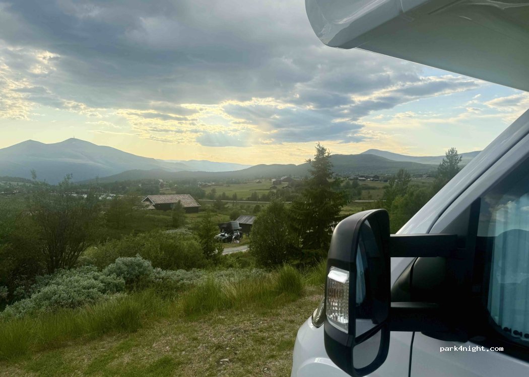 La vue est extra et c’est au départ de sentiers dans le massif de Rondane de toute beauté.Mais c’est cher : 37 euros en incluant cependant l’électricité la douche et même le sauna .Hôtesse à l’accueil très aimable et serviable .Vous avez l’alternative d’un parking en bas du hameau : 50 kr la nuit ….