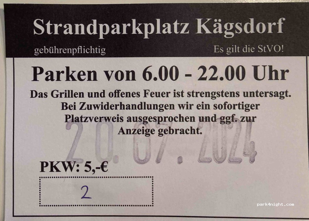 Abzocke!!! Die hohe Stellplatzgebühr gilt nur bis 22 Uhr , dann muss man den Platz verlassen!Die 5€ für PKW tagsüber ist ok, aber nicht für Camper!Es werden in der Saison auch regelmäßig Nachts Kontrollen durchgeführt und die Camper vom Platz geschmissen mit Bußgeld!