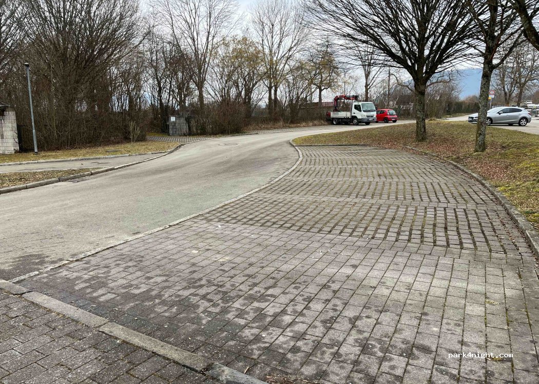 Ruhiger Platz, geschottert. Daneben ein Barfußpfad mit Kneippbecken und Beginn eines Trimm-Dich-Wegs. Sehr ruhige Nacht, die Straße hat nicht gestört, morgens Jogger und Spaziergänger.Etwas oberhalb im Friedhof Toiletten tagsüber geöffnet.