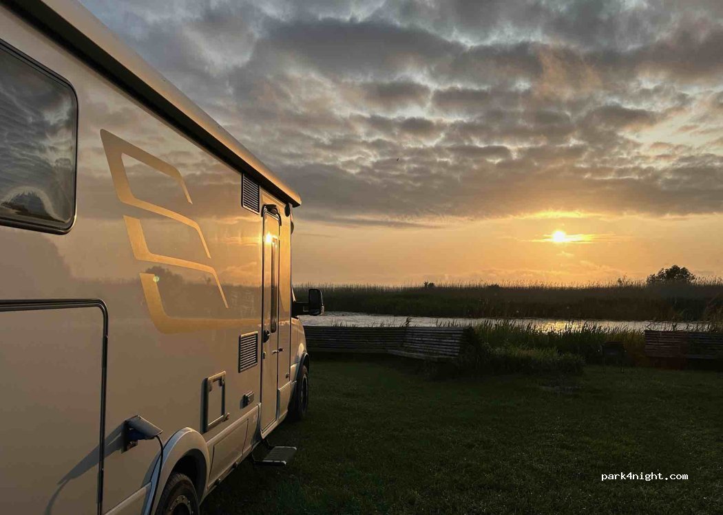 Pitch for mobile homes, caravans, tents directly at the port. Barrier access, pleasant staff, clean showers, public toilets, 1 restaurant, 1 bar, ferry connection to Juodkrante (Curonian Spit) - bicycles can be taken, buy ferry tickets on site in time, because the number of people is limited. Evacuation of mobile homes via the inlet pipe.