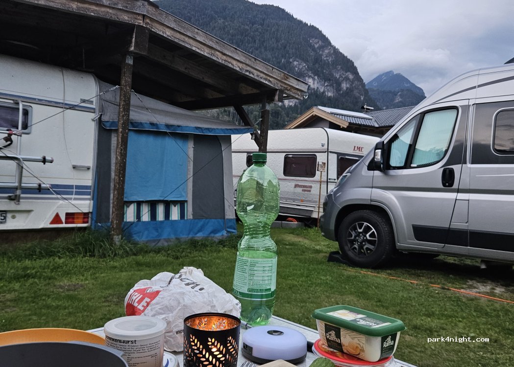 Wiese sehr schön, allerdings steht man sehr eng zu seinen Nachbarn. Platz fühlt sich eng an. Bis 22 Uhr Recht laut, ab dann schlagartig ruhig. Pool groß genug um einige Bahnen zu schwimmen. Schöner Blick auf die Hausberge. Regenduschkopf vorhanden. 17€ für eine Nacht, Kastenwagen, 1 Person - finde ich einen sehr guten Preis.
