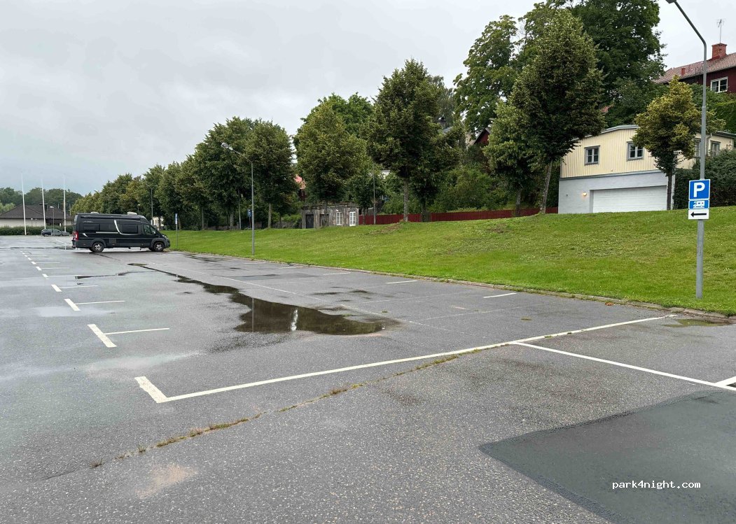 Sehr guter Parkplatz für einen Bummel in die Stadt, auch für große Womo. ICA Supermarkt in der Nähe. Tipp: Restaurant Monte Carlo ist nicht weit weg und das Essen war super!