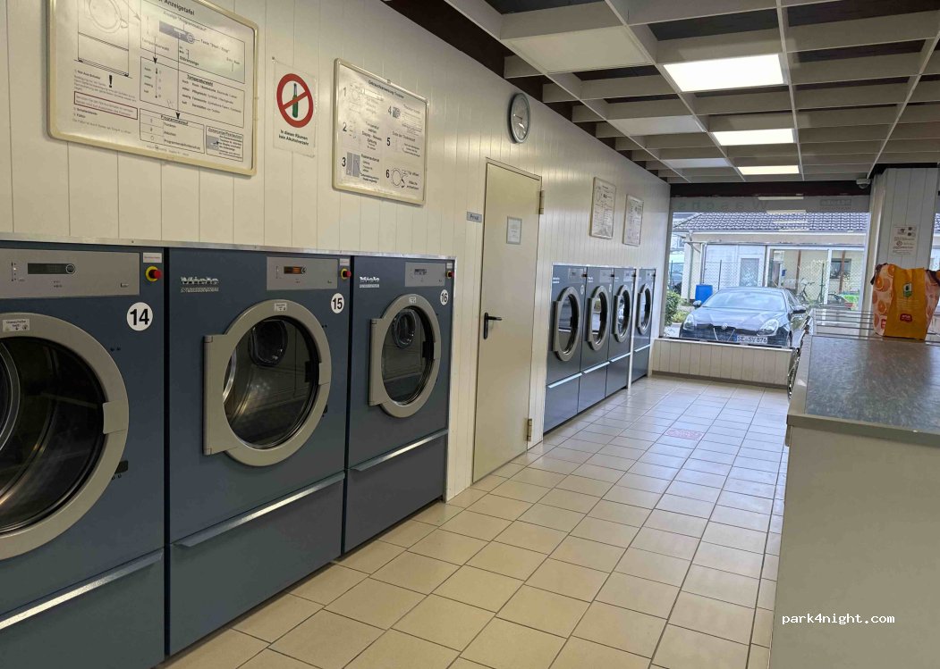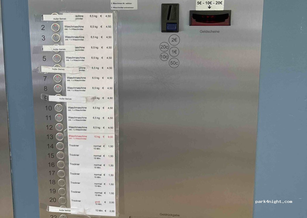 Mit dem Womo auf der Durchreise. Tolles, sauberes Waschcenter. Die Maschinen sind sauber und schnell.“ Pflegeleichte Wäsche“ für für Euro 6,50/6 Kilo und der Trockner für Euro 1,50. Das ist ein sauberes, reales und faires Geschäft. Mit dem Womo kann man bei Aldi für 2 Stunden kostenlos stehen und sogar noch seinen Einkauf erledigen.