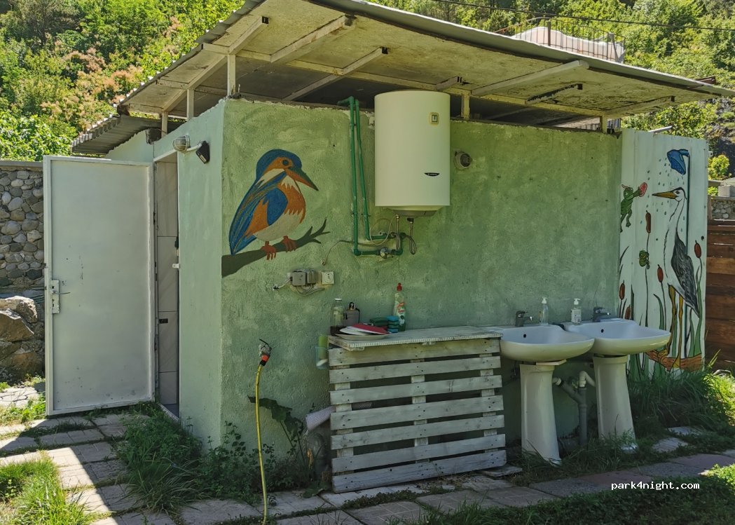 Petit camp derrière la maison des propriétaires. En raison des grandes haies et des arbres, l'endroit est très ombragé. Il y a un blocs sanitaires, chacune avec toilettes pour les hommes et les femmes, un intérieur et deux douches extérieures. Pour 2 personnes dans la tente du toit, nous avons payé 15 euros pour la nuit. Après Virpazar, seulement 500m à pied