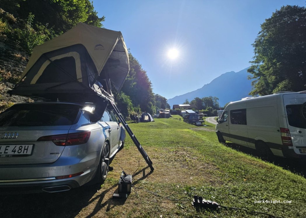 Campeggio Talacker a Ringgenberg, vicino a Interlaken. A cinque minuti d'auto da Interlaken. Posizione piacevole e tranquilla. Autobus gratuito per Interlaken e dintorni con la carta ospiti. Strutture sanitarie belle e pulite. Arrivo possibile fino alle 18:00. NON È POSSIBILE arrivare tardi.