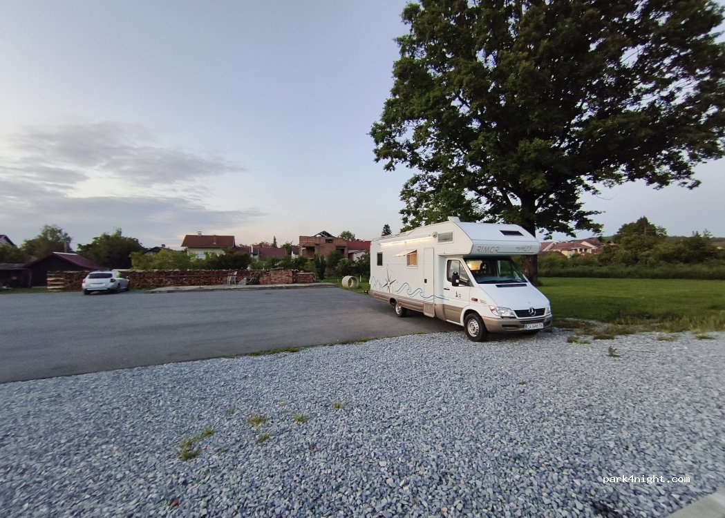 Great place for overnight. Huge asphalt parking. Great restaurant and very tasty food, the owner has created a great spot for a rest. Supermarket is on the side. Cafes and city centre is walking distance.
