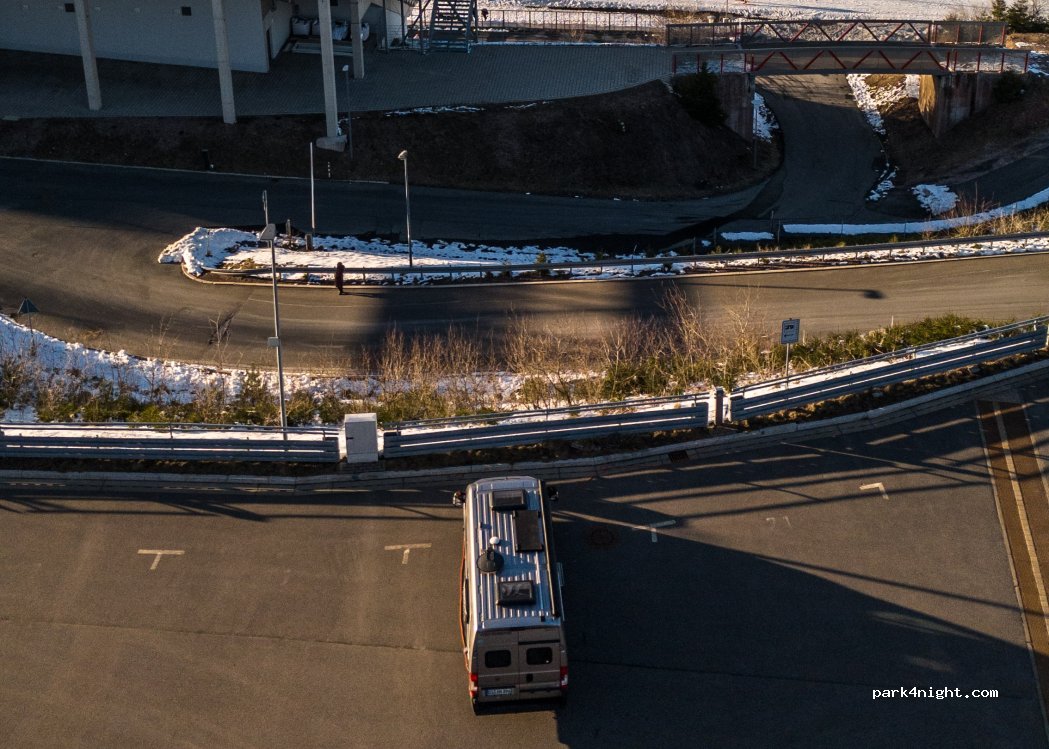 Für uns ein super Stellplatz! Asphalt, ok, dafür alles von warmen Duschen, Toiletten bis Entsorgung vorhanden. Direkt an der Biathlonarena, Langlaufhalle, Bobbahn und Downhillpark, alles kann besichtigt werden. Biketour 20 Minuten zu den Sprungschanzen absolut lohnenswert. Vielen Dank an Jens für die kleinen Hilfen rund um den Stellplatz. Für uns hat alles gepasst.