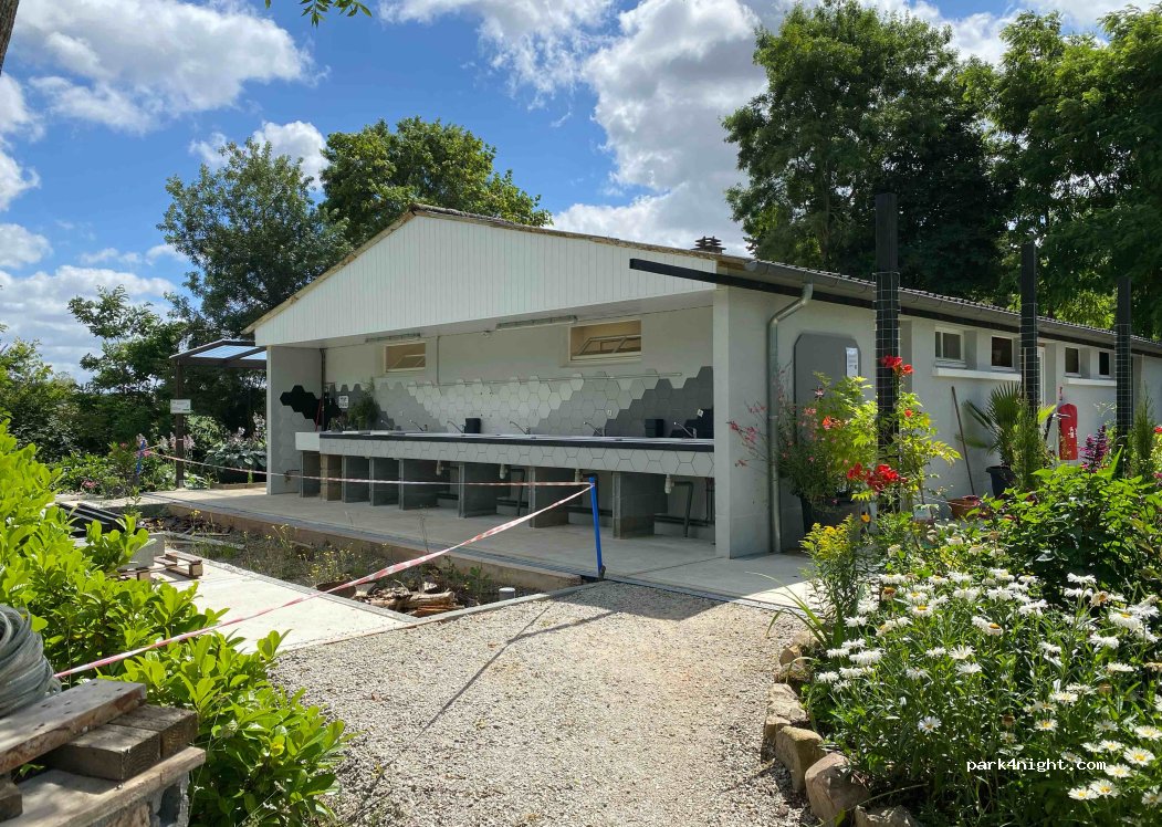 Super Stellplätze, da würden andere 3 draus machen. Zum größten Teil zwischen Bäumen. Wir hatten mit Strom und gleich Wasseranschluß. W-Lan im Preis mit drin. Sehr saubere Toiletten mit Papier und Sitz. Duschen ebenfalls sauber, einziges Manko- die Brauseköpfe sind für Menschen ab 1,80m zu niedrig. Dafür aber Blumen im Waschraum. Bäcker und Lebensmittel ca.3 min mit dem Rad im Ort.