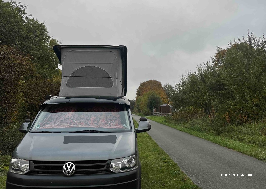 Top Platz für eine autarke Übernachtung, Biergarten mit Trampolinen ist gleich gegenüber. Sehr ruhig,nach Monschau ca.20Minuten. Kostenlos und sogar erlaubt.