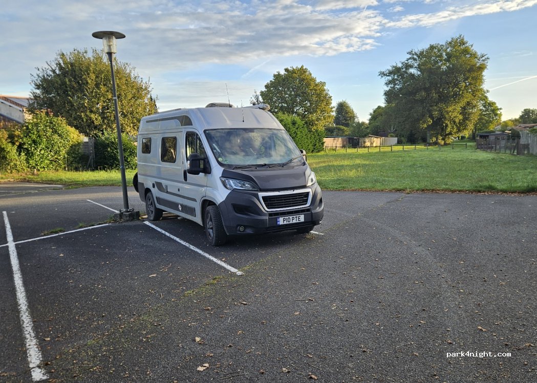 Thanks for a calm and nice place close to the center of Le Barp. Bought Sushi from a food truck and fresh bread at the bakery beside at the town square. Quiet and nice sunrise gave a lovely breakfast environment. Can warmly recommend this simple but good night parking.