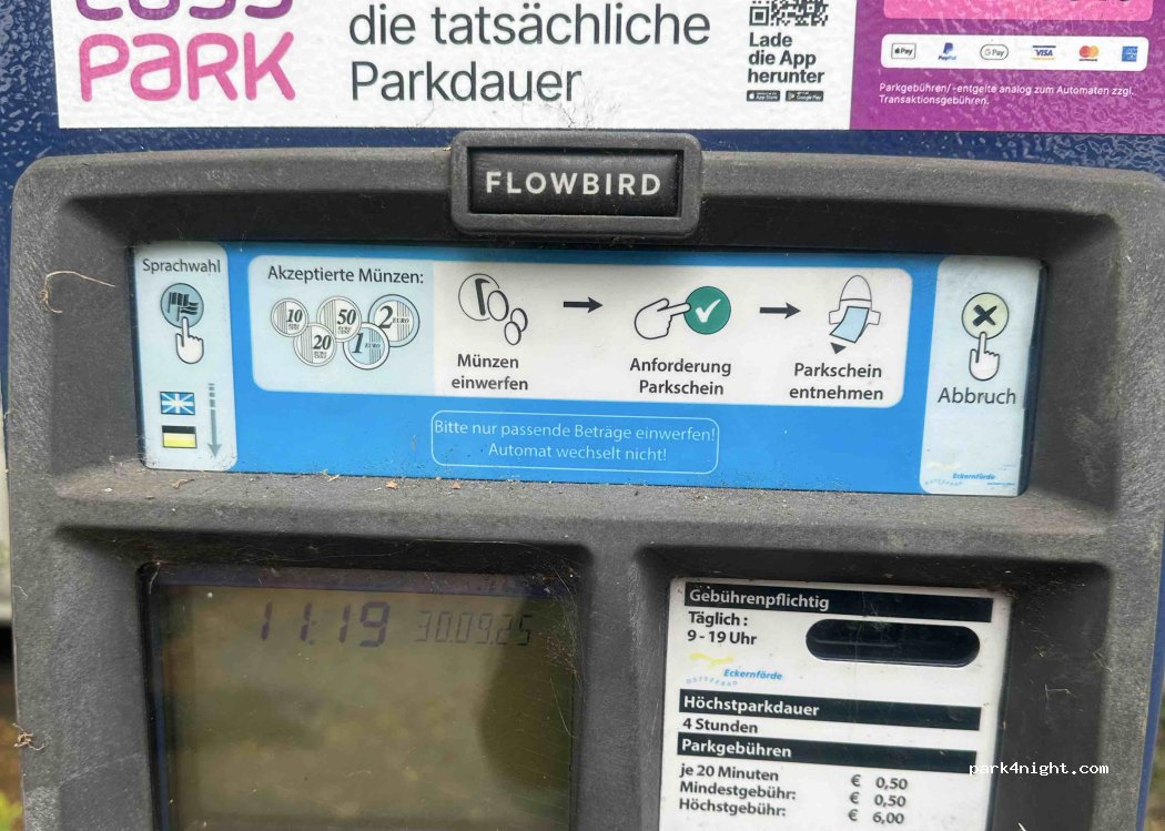 Toller Platz, auch für große Wohnmobile, um Eckernförde am Tag zu besuchen und/ oder den Strand zu genießen. Hier gibt es eine ausgesprochen große Auswahl an Einzelhandelsgeschäften und Restaurants.Sehr lohnenswert!
