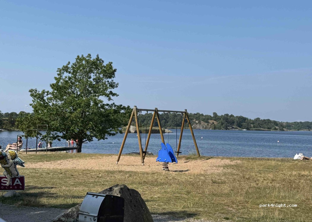 Ebene Stellplätze mit Strom und Blick zum Wasser. Schöner öffentlicher Bade-Sandstrand mit Spielplatz angrenzend. Tagsüber viel Betrieb. In der Nacht sehr ruhig. Sanitär mässig sauber, das ist aber den vielen Campern geschuldet denn es wird 2 x täglich geputzt. Wir haben 299 SEK bezahlt für 1 Nacht mit Strom. Gut ausgestattete Küche. Ronneby bietet mit dem Kurpark, Kirche und Altstadt ein Erlebnis abseits der Touristenmassen.