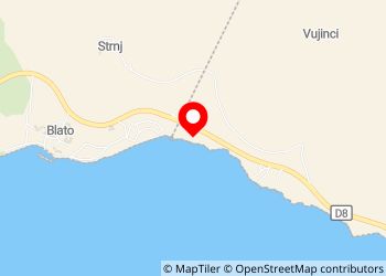Camp de voiture Boban. Placez sur la pente en face de la route côtière. Petite plage sur escalier à 50 m. Mini marché et boulangerie sur le camping adjacent. La prochaine ville avec des restaurants, petit port, plage et petit supermarché sont à 15 minutes à pied. Bon petit camping avec de nombreux campeurs permanents et familles