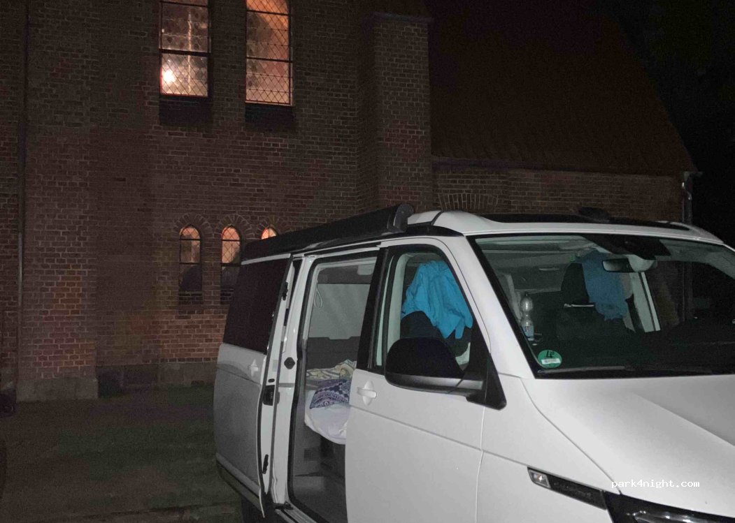 Guter, ebener Stellplatz an einer Kirche. Perfekt für eine Nacht auf der Durchreise. Gegenüber Rossmann, Lidl und Getränkemarkt. Alles, um die Lager auf dem Weg nach Norden nochmal aufzufüllen.