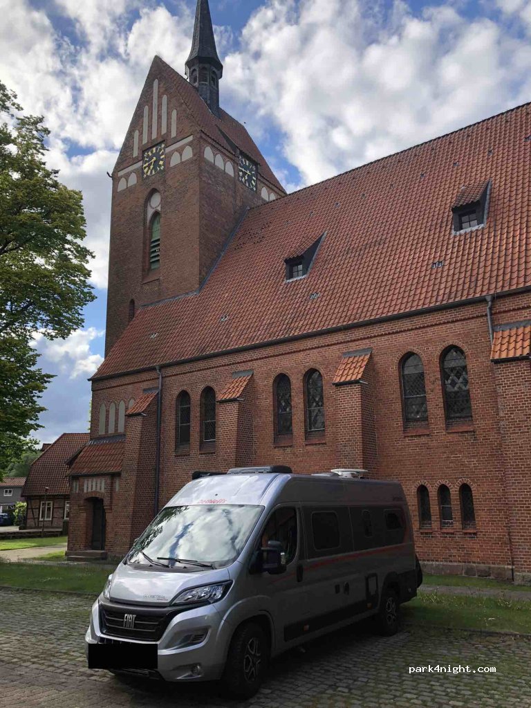 Der kleine Parkplatz der Kirchengemeinde! Wäre nett wenn Camper wenigstens davor Respekt hätten!!! Es gibt einen kostenlosen Stellplatz am Schwimmbad!