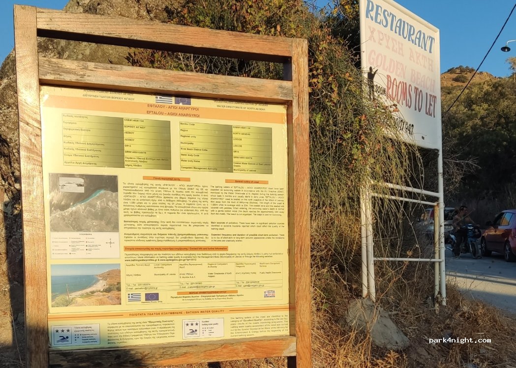 It’s free. There is a hot spring Across to the Turkish coast (Assos) . It’s the nearest position to Turkey. Showers on the beach for free