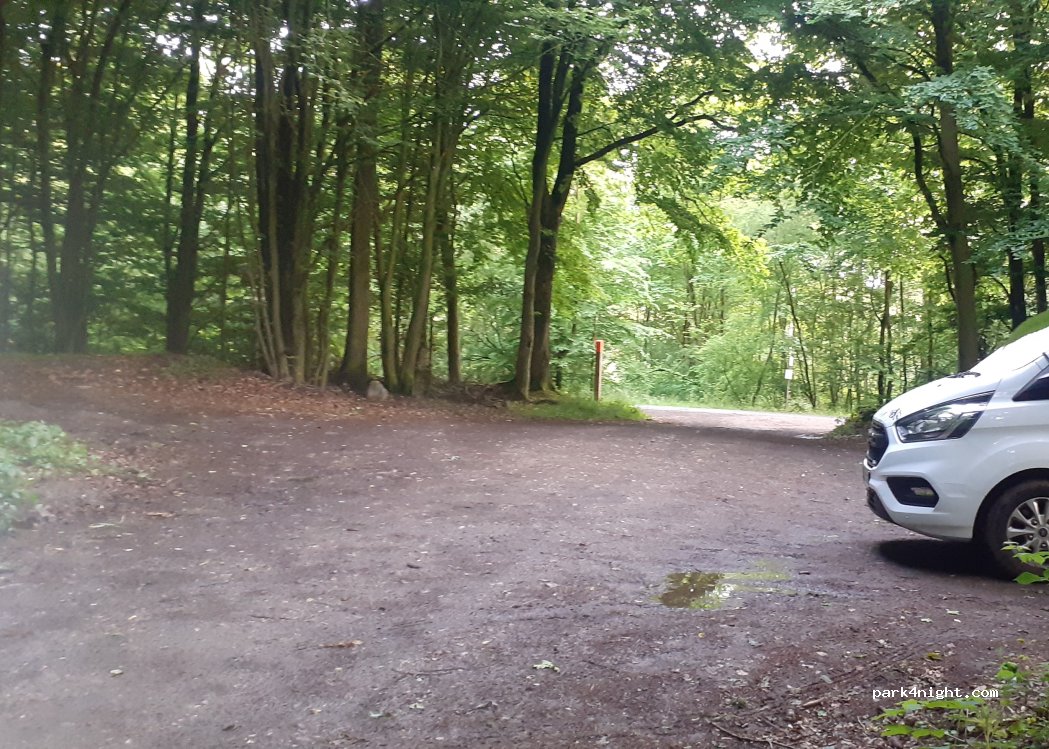 Waldparkplatz für Spaziergänger, aber niemand während meines Aufenthaltes. Nachts sehr, sehr ruhig. Umgeben von Bäumen und im Dunkeln werden Sie von der Straße aus nicht gesehen. Autos dürfen nicht weiter in den Wald. Sauber halten!