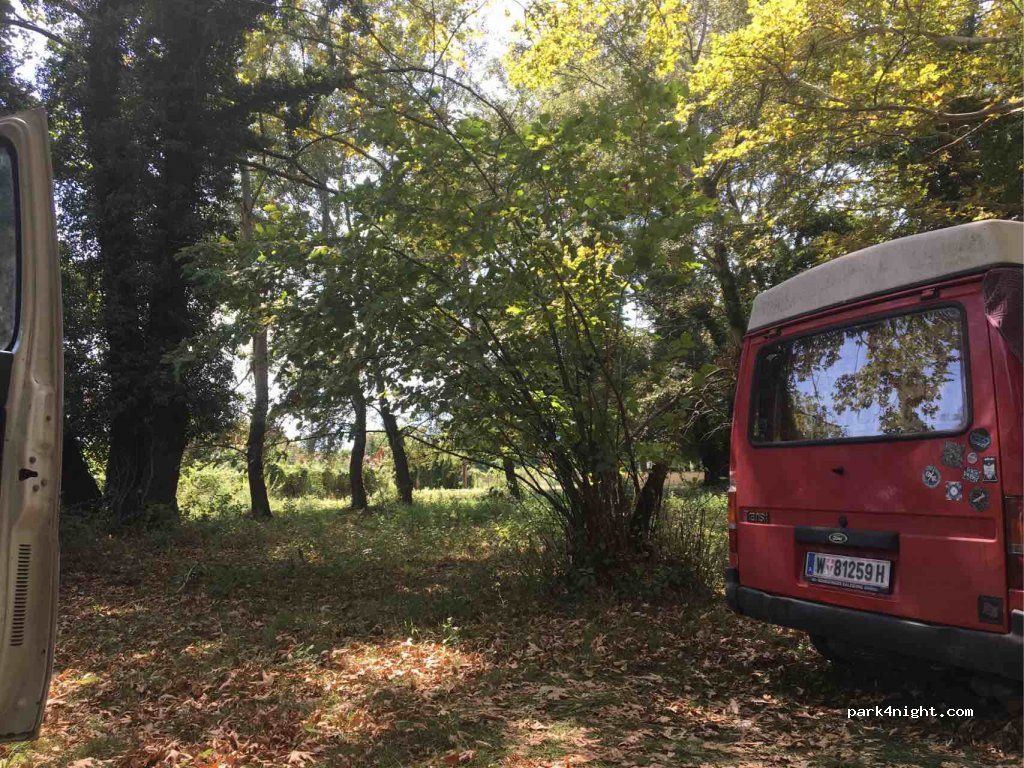 Schöner Ort mit viel Platz, umgeben von Bäumen, wir blieben eine Nacht, die Polizei kam am Morgen und überprüfte unsere Pässe, schickte uns aber nicht weg. sehr bequem.