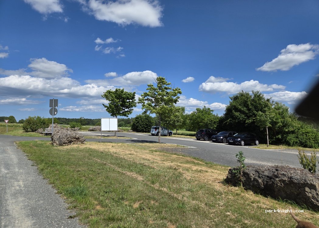 Parking avec vue dégagée juste avant l'autoroute A70 et sur une route de campagne à Welschenkahl. Zone de pratique proche du procès. Léger bruit de l'autoroute.