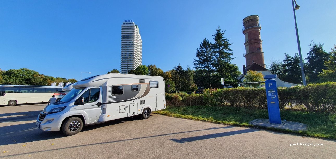 Großer P-Platz mit separater WoMo-Abteilung auf Asphalt. Wir kamen Sonntag 17:30 Uhr mit VW California an, haben 1,20€ Parkgebühren bezahlt. Ticket bis Montag 10:30 Uhr gültig. Toilette am Strand, ca. 300 m entfernt. Bäckerei Junge gleich hinterm Leuchtturm. Wir haben gut geschlafen, leise war es aber nicht ;)