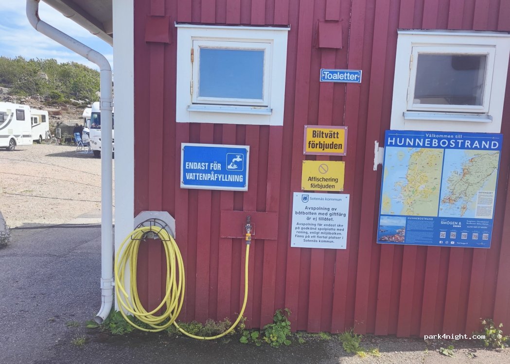 Pas vu de panneau spécifique hormis un "P klass 1" donc sûrement payant. Pour l'eau il y a différents robinet avec long tuyau à chaque ponton du port, aucune indication si c'est potable ou non, et autorisé ou non de se servir. Donc en l'absence d'interdiction et en étant discret ça passe. Pas dormi ici. Juste passé.