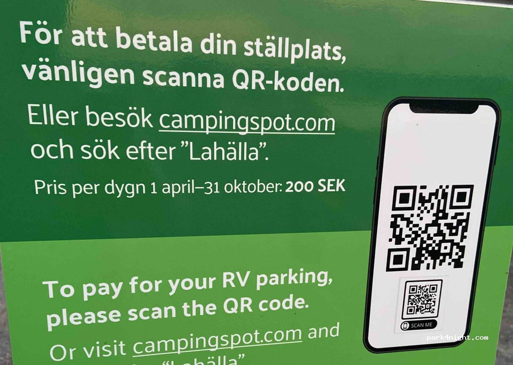 Une étoile en moins car vue pas génial , sinon tous services saut eau potable.. 200sek avec électricité , proche du centre ville, payer en flanchant le QR code (facile d’utilisation)
