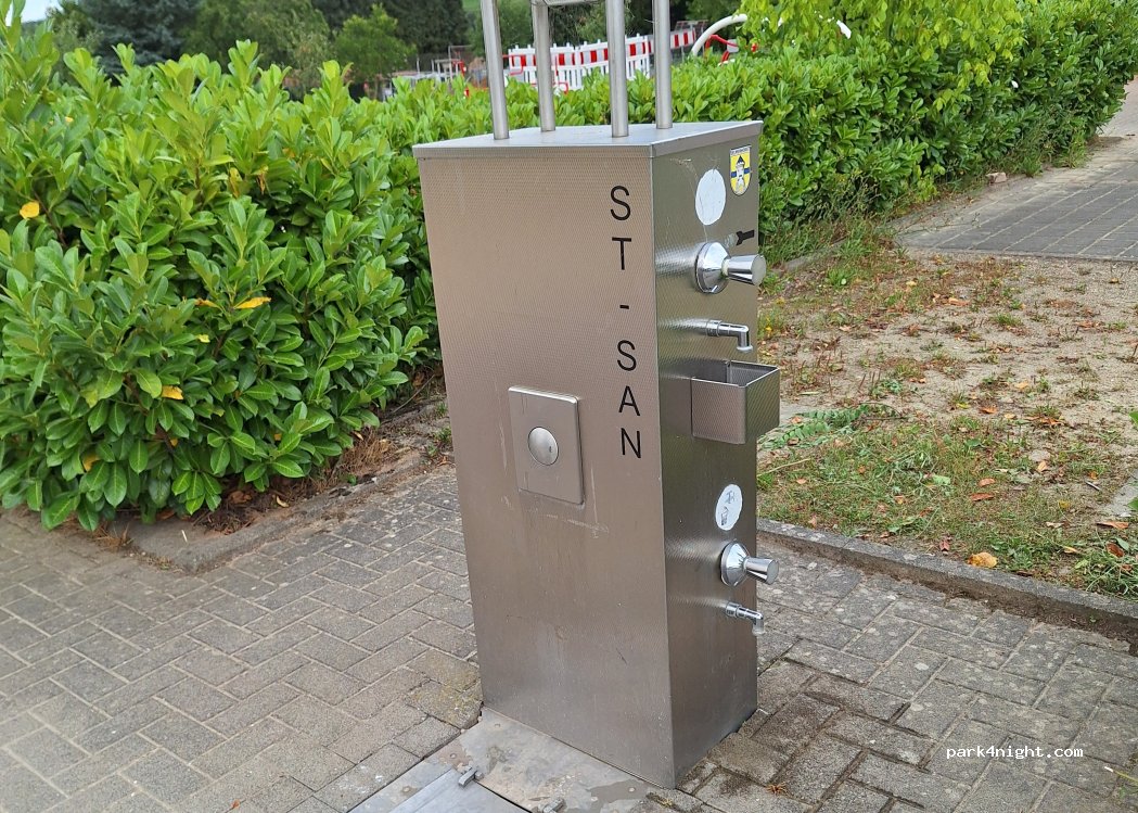 6 big places, electricity available too (I paid 2€ - coins, probably got 12hours via switch 2) Easily paid with app, which works in many countries - 5€ for 24h. There's even a fitness park nearby and a small football field. REWE and Penny supermarkets within walking distance.