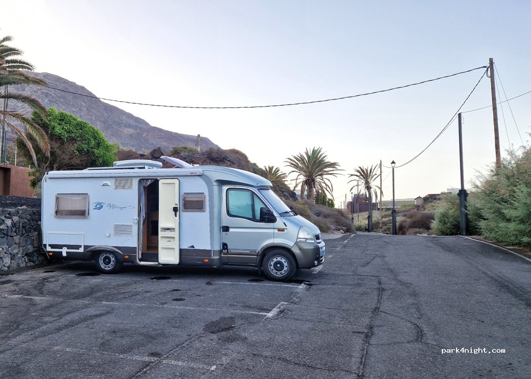 Da miedo de noche. es el aparcamiento donde se esconden las camper cuando llegan a Valle Gran Rey y se dan cuenta de que no pueden aparcar donde está la playa y los servicios.