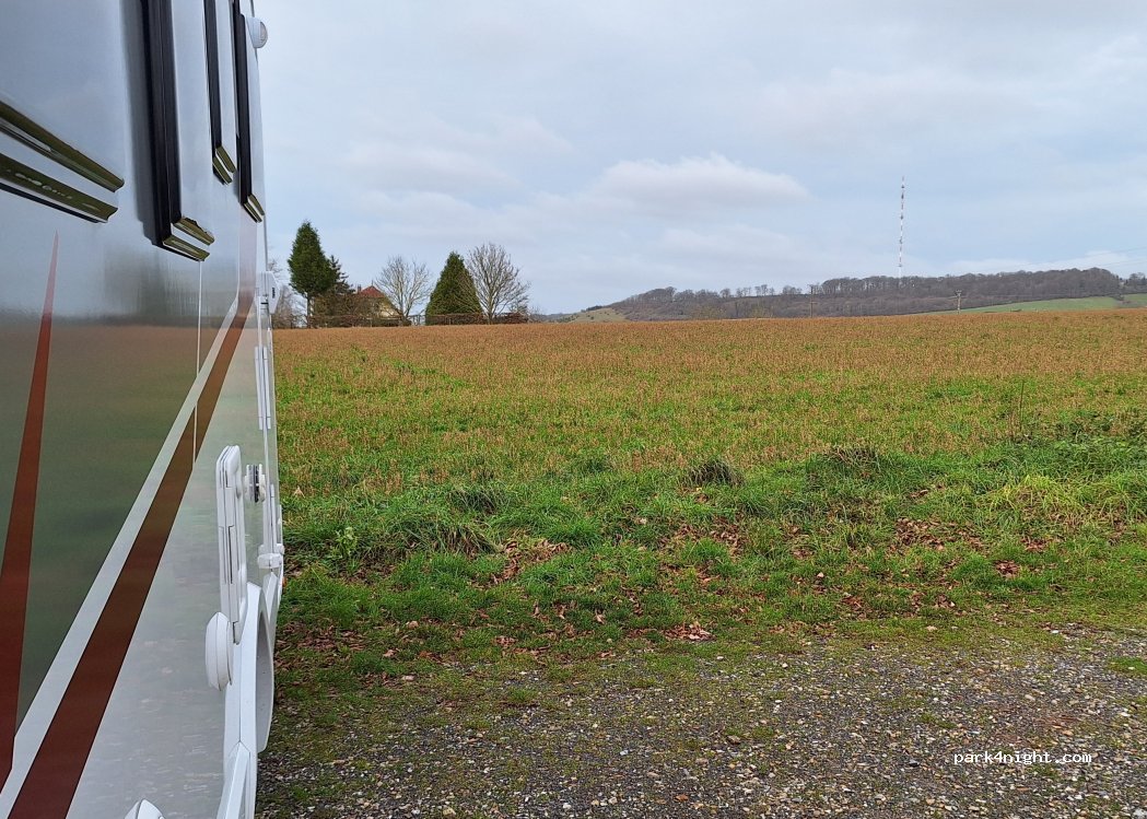 10 places maximum quand les camping-cars sont rangés correctement. Effectivement mal indiqué : en venant de Neufchatel, tourner à droite 30 m après l’épicerie juste après le petit parking voiture (petite route en face du numéro 11). Très calme.
