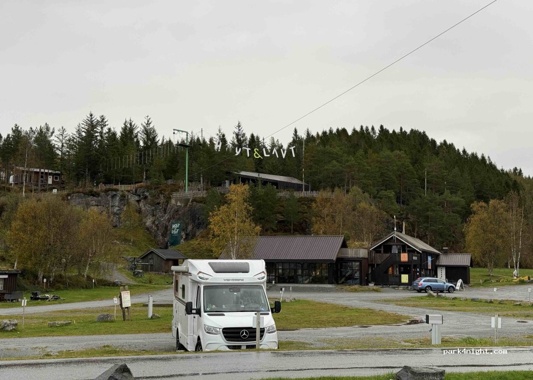 Schöner Platz. Sehr ruhig in der Nacht und tagsüber betriebsam, da an der E39 und viele hier im Restaurant Pause machen. Toller Klettergarten . Es gibt gute Abwaschmöglichkeiten und zwei Waschhäuser.
