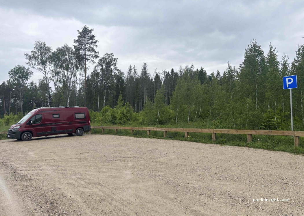 Wanderer parking lot of the RMK, without installations. At the end of a forest trail in a turning loop, right at the start of the Marimetsa trail. For a night wonderful and very quiet despite the road.
