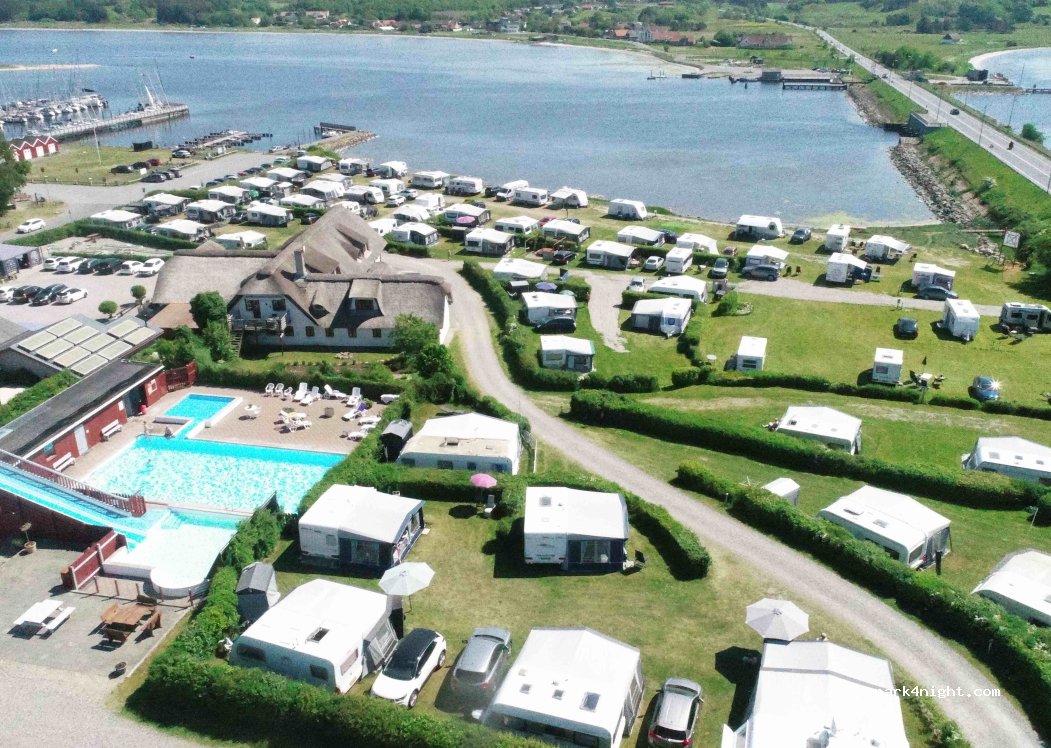 Schöner Platz mit Sicht auf den Fjord. Super netter Empfang, der Besitzer spricht sogar deutsch. Viele dänische Dauercamper, toller Spielplatz mit Hüpfkissen, Pool, Restaurant mit Eis und Pizza. Wenige Minuten zum Hafen und Strand. Neue Familienbäder. Wir waren für 2 Nächte dort und können es sehr empfehlen.