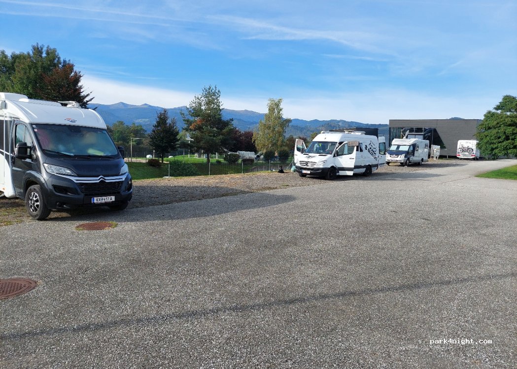Parking de l’Aqualux Therme Fohnsdorf. Les camping-cars sont tolérés ici gratuitement. Nous avons passé la nuit ici avec 13 autres véhicules sans visiter le spa. Grand parking, étonnamment calme. Apparemment, vous pouvez aussi tirer de l'électricité, mais nous ne l'avons pas utilisé.