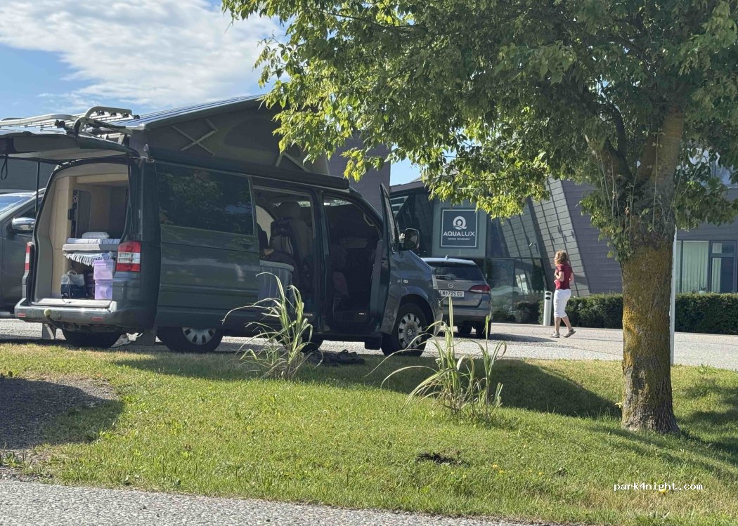 Waren hier und wurden durch Schild wie auch kurz danach angesprochen, dass kein Camping/Womo/Übernachten erlaubt ist. Nur Parken für Besuch Therme !!