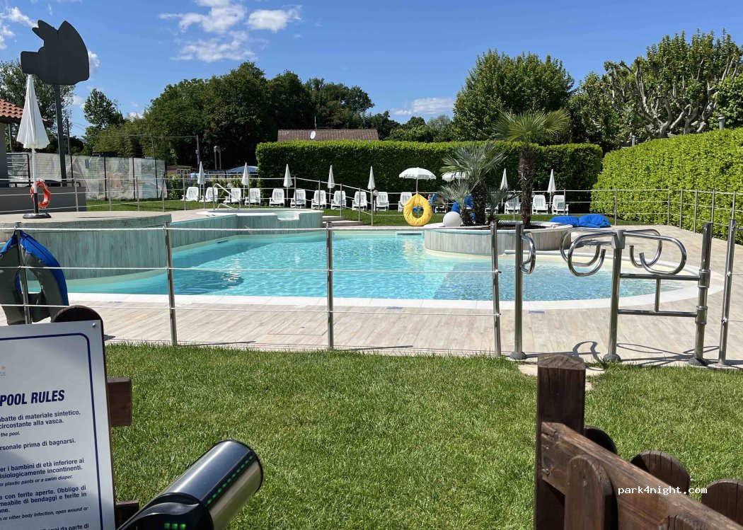 I am not a big fan of campsites with pools etc but this one is pretty nice. Good size. Really friendly and helpful staff. Was euro35 for 4 of us in 7.5m van inc all extras - WiFi, elec, showers etc. 15 min east cycle to Ancona which is a nice place with promenade.